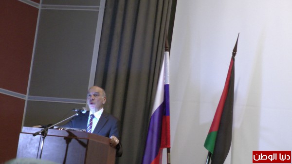 ثم تحدث سفير دوله فلسطين لدى روسيا الاتحاديه د. فائد مصطفى ، واستعرض واقع مدينة القدس ومكانتها الروحيه والدينيه والسياسيه ، وعن طبيعة الاجراءات التي تقوم بها اسرائيل والهافه الى سلخ هذه المدينه عن ماضيها العربي الفلسطيني الاسلامي والمسيحي ، ونبه المجتمع الدولي في ان عليه ان يدرك ان القدس فيها تنبت بذرة السلام ومنها تنطلق شرارة الحرب .
