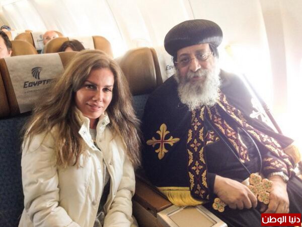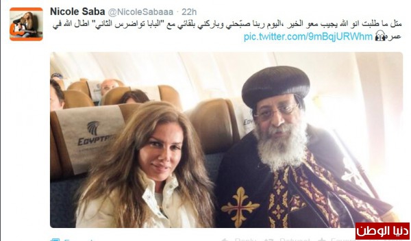 نيكول سابا تلتقي بابا الاسكندرية وتنشر صورتهما معا على الطائرة