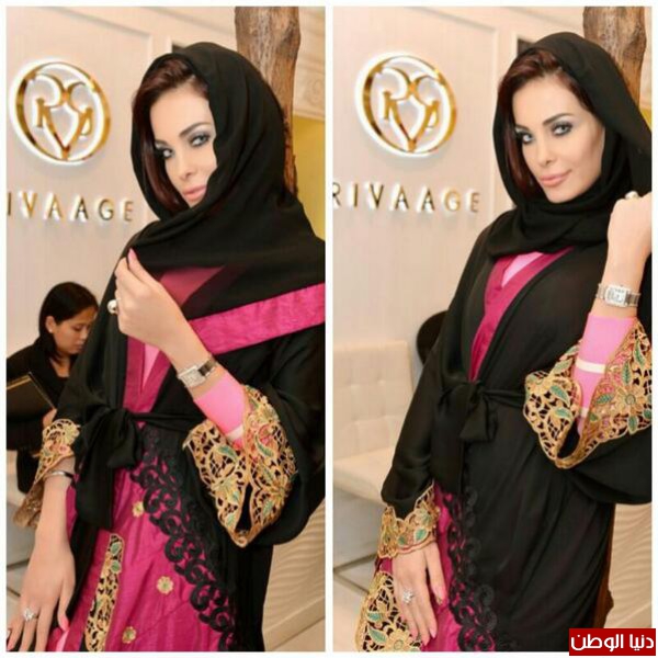 بدت حوراني كالباربي عند وصولها إلى المتجر لثوب وردي قصير، ثم إرتدت فوق ثوبها عباية من تصميم إيمان وإلهام الفلامرزي.