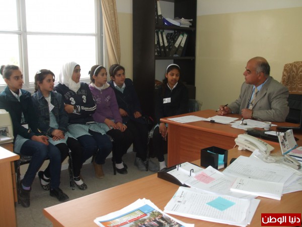 الأساسية برفقة مدرسة الاجتماعيات السيدة ميسون قاسم بزيارة إلى مديرية حكم محلي جنين حيث التقين بنصر آدم نائب المدير العام الذي قدكم لهن شرحاً مفصلاً عن عمل دوائر المديرية وأقسامها، وفي نهاية اللقاء تم عمل جولة لهن في المديرية، وتأتي هذه الزيارة ضمن مشروع " تعزيز مفاهيم الحكم المحلي لدى طلبة المدارس".
