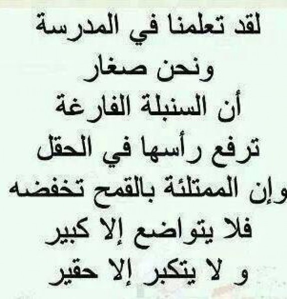 ووضعت صورة أخرى :" لقد تعلمنا في المدرسة ونحن صغار أن السنبلة الفارغة ترفع رأسها في الحقل وأن الممتلئة بالقمح تخفضه فلا يتواضع إلا كبير ولا يتكبر إلا حقير ".