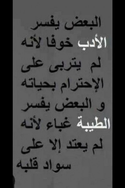 فغردت نجوى في رد غير مباشر بوضع صورة كُتب عليها :" الأدب يفسره البعض خوفا لأنه لم يتربى على الاحترام في حياته والبعض يفسر الطيبة غباء لأنه لم يعتد إلا على سواد قلبه ".