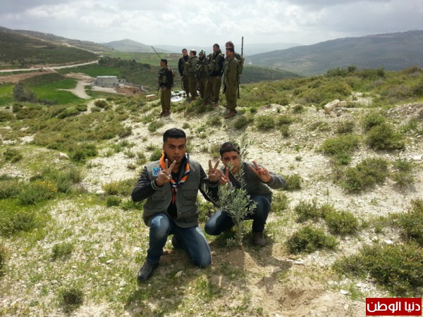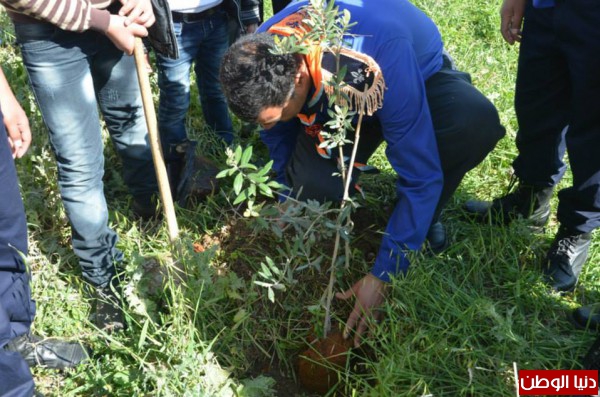 لها التنسيق الفصائلي والمحافظة في قرية بورين حيث تم زراعة أشتال الزيتون في الاراضي المعرضة للمصادرة من قبل الاحتلال الاسرائيلي .