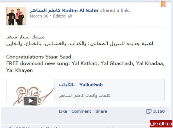 قام الفنان العراقي كاظم الساهر بإهداء مواطنه ستار سعد أغنية "يالكذاب" والتي هي من كلماته وألحانه .