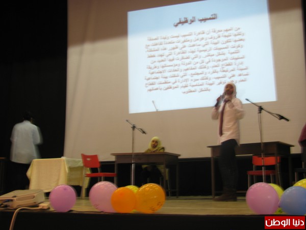 و في ذات السياق قدمت أبو خليل شكرها لمدير التربية و المشرفين التربويين و المعلمين و المعلمات الذين ساهمو في إنجاح هذا الملتقى , كما اثنت على جهود الطلبة و مواهبهم التي مزجت بين مفاهيم الإدارة و الحياة العملية . من خلال توظيف العديد من الفقرات في التعريف بالإدارة و مبادئها.