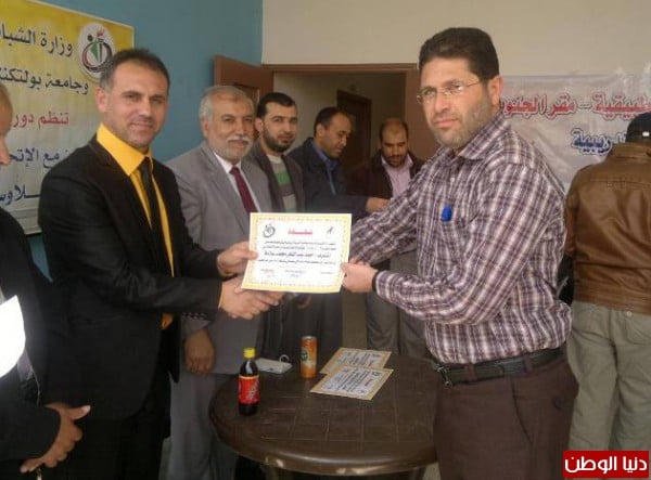 فبحضور د. عبد العزيز الشقاقي مدير مقر رفح والسيد عبد الغني الشيخ مدير مديرية الشباب والرياضة رفح والسيد محمود أبو شرار الاتحاد الفلسطيني لكرة الطاولة والحكم الدولي والمحاضر أديب أبو غزاله والمدرب أبو حسن الغول مدرب فريق نادي شباب كندا لكرة الطاولة و أ. حسام النحال أستاذ التربية الرياضية وطاقم العمل في بوليتكنك رفح اشرف جربوع التعليم المستمر و يوسف موسي الشؤون الإدارية وطلاب الدورة