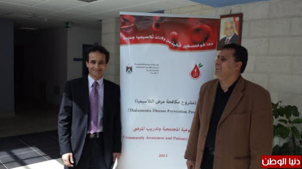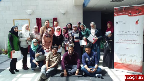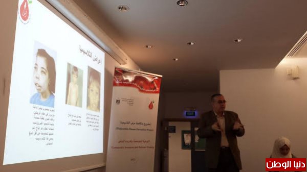 نظمت جمعية أصدقاء مرضى الثلاسيميا ورشة تدريبية حول واقع الثلاسيميا في فلسطين لطلبة التحاليل الطبية بالتعاون مع قسم التحاليل الطبية / جامعة النجاح الوطنية وذلك بدعم الصندوق العربي للإنماء الاقتصادي والاجتماعي من خلال البنك الإسلامي للتنمية، بإدارة المجلس الاقتصادي الفلسطيني للتنمية والاعمار (بكدار) بتاريخ 2014.3.29
