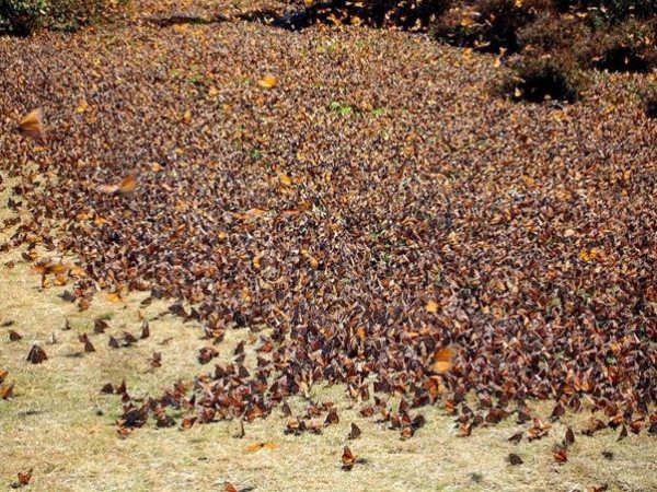عندما ترى هذه الصور للوهلة الاولى تظن انك ترى مجموعة من اوراق الشجر الذابة على الارض ، لكن الحقيقة غير ذلك هذة مجموعة من الفراش الكثيرة التى تشبه السراب