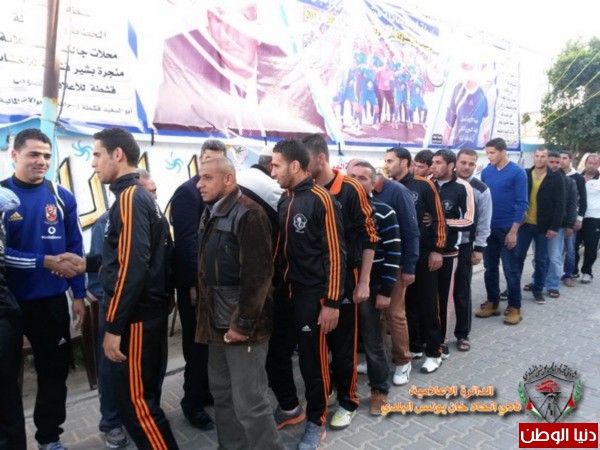وضم وفد اتحاد خان يونس رئيس مجلس الإدارة م. جمال الفرا و أعضاء الإدارة أ. ابراهيم العقاد و أ. عماد البيوك و أ.محي الدين النجار و أ. سائد البشيتي و م. وائل الجبور ولاعبي فريق الكرة الأول بالنادي ورابطة جماهير النادي .
