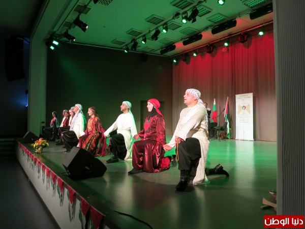 وفي نهاية الحفل الرسمي، استقبل الجمهور اللوحات الفنية الراقصة لفرقة "فنونيات" بالترحاب والإعجاب، معرباً عن ذلك بالتصفيق الاحر ثم بالانضمام إلى الدبكة الفلسطينية على أنعام اغنية "علي الكوفية"، التي اختتمت بها الأمسية.