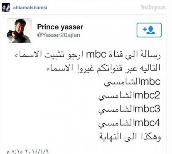 وكانت أحلام نشرت فجر الخميس عبر حسابها على Instagram صورة لمعجب براغب علامة يطالب من خلالها شبكة MBC ساخرا بربط أسماء كل قنواتها بإسم أحلام الثاني "الشمسي"، لترد عليه مستفزة إياه: "أوعدك أخليهم يفكروا في الموضوع إنت بتعرف إن طلباتي أوامر، بصراحة الفكرة تجنن".