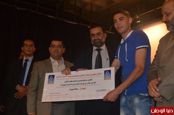 اختيار جلال أبو يوسف كأفضل مدافع في قطاع غزة لعام 2013ـ2014.