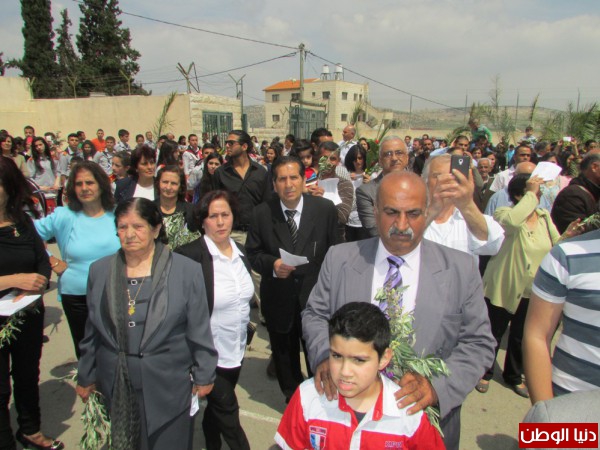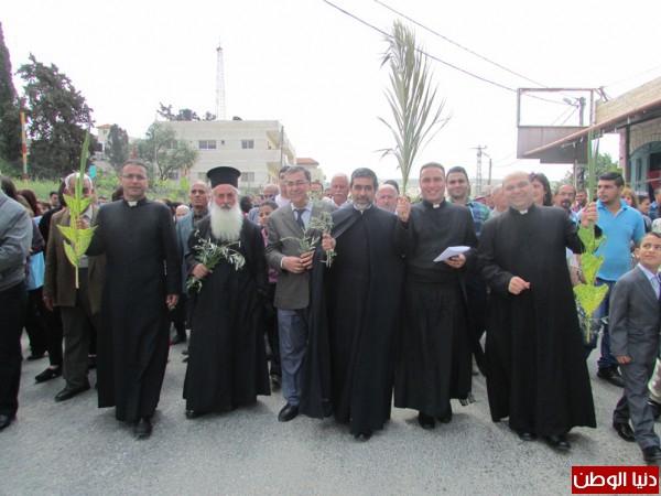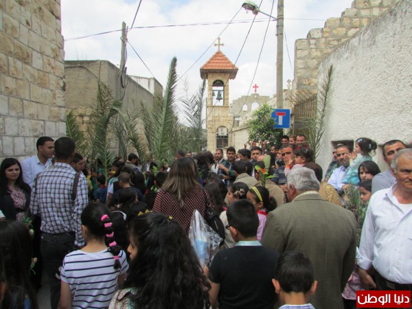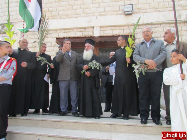 باحد الشعانين في الكنائس الاربعة في البلدة وهي اللاتين والروم الارثوذكس والروم الملكيين والكنيسة الانجيلية وسط رفع اغصان السعف والزيتون والتلويح بها في بداية