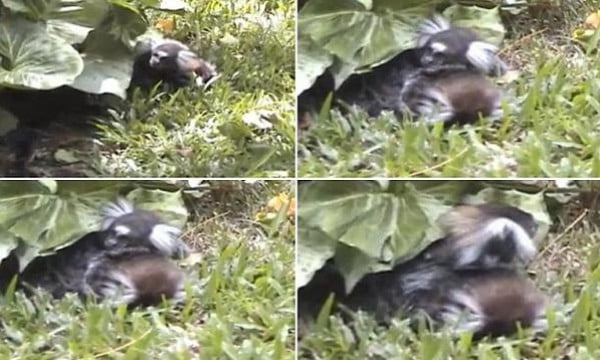 اعتنى قرد في إحدى الغابات بالبرازيل برفيقته التي كانت تحتضر عقب سقوطها من فوق شجرة، وظل على مدى ساعتين ونصف الساعة يدفع عنها الضواري والمتطفلين، وهو ينظر إليها حتى ماتت بين يديه وعينيه.