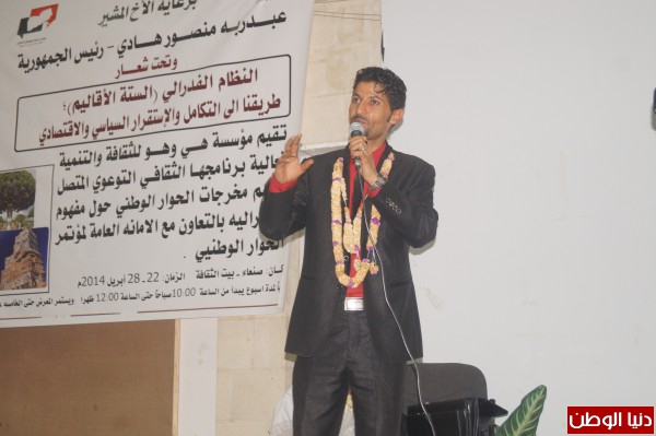 حيث ستﺭﻛﺰ الندوة ﺍﻟﺘﻲ يشارك ﻓﻴﻬﺎ ﻋﺪﺩﺍ ﻣﻦ ﺍﻟﺴﻴﺎﺳﻴﻴﻦ ﻭﺍﻟﻤﺜﻘﻔﻴﻦ ﻭﺍﻷﻛﺎﺩﻳﻤﻴﻴﻦ - ﻋﻠﻰ ﻋﺪﺩ ﻣﻦ ﺍﻟﻤﺤﺎﻭﺭ ﺍﻟﻤﺘﻌﻠﻘﺔ بكيفية توزيع الثروة في اطار ﺍﻟﺪﻭﻟﺔ ﺍﻻﺗﺤﺎﺩﻳﺔ ﺍﻟﺠﺪﻳﺪﺓ وكذا دور المرأة في بناء اليمن الجديد...