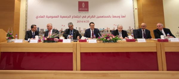 وقبل نهاية الاجتماع، وبعد الاجابة على مداخلات المساهمين، صادقت الجمعية العمومية في اجتماعها على تقريري مجلس الإدارة ومدققي الحسابات الخارجيين ارنست ويونغ، والموافقة على توزيعات الأرباح المقترحة، وانتخاب مجلس إدارة جديد مكون من التالية أسماؤهم؛ السيد هاشم الشوا، مأمون أبو شهلا، وماهر فرح، وهاني نجم، وفيصل الشوا، ومحمد نافذ الحرباوي، وطارق الشكعة، وجون خوري، وطارق العقاد، ولنا أبو حجلة، وعبد الله الغانم. كما فوضت الجمعية العمومية مجلس الإدارة بتحديد التعاقد مع مدقق الحسابات للعام 2014، كما ابرأت الجمعية ذمة رئيس وأعضاء مجلس الادارة عن العام 2013.