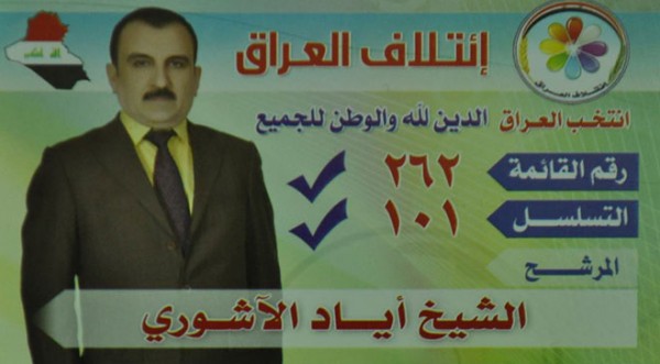 مرشح مسيحي عراقي يكتب على صوره "معتنق الاسلام على ولاية محمد وال محمد"
