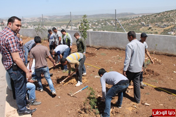 حيث قام مجموعة من موظفي ومتطوعي الاغاثة الزراعية وطلبة المدرسة بزراعة اشجار الزيتون وبعض الاشجار الحرجية وذلك من اجل تجميل المدرسة