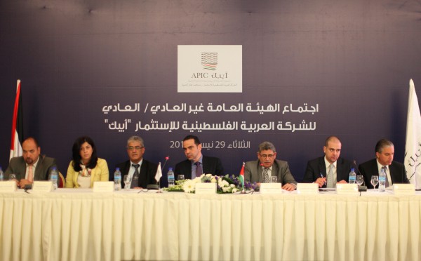 عقدت الشركة العربية الفلسطينية للاستثمار-أيبك،يوم الثلاثاء الموافق 29/04/2014 اجتماعي هيئتها العامة غير العادي والعادي للمساهمين بالتزامن في رام الله والعاصمة الأردنية "عمان" باستخدام تقنية الإتصال المرئي، بحضور مراقب الشركات في وزارة الاقتصاد الوطني الفلسطيني، ومدير عام هيئة سوق رأس المال، والرئيس التنفيذي لبورصة فلسطين، اضافة إلى مدقق الحسابات الخارجي والمستشار القانوني للشركة.