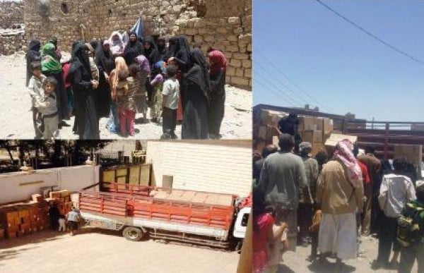 وتمت عملية توزيع تلك المواد من قبل كلاً من: السيدة نادية بوزاهر حرم السفير الجزائري - رئيسة جمعية (الهومسا) والسيدة اعتدال حرم السفير السوداني اللتان قامتا بالنزول الميداني الى منطقة (مذبح) والاشراف على عملية توزيع تلك المواد على الاسر والعائلات الفقيرة والمعدمة بالمنطقة بشكل مباشر.
