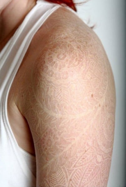 ظهر مؤخرا نوعا من أنواع الوشم، لونه أبيض- على غير المألوف والمعهود- يجعلك تظهر بشكل مختلف؛ لأن الشائع عند الجميع والمتعارف عليه هو الوشم الأسود والكثير منا لا يعلم شيئا عن هذا الوشم الجديد الذى يضىء فى الظلام، وذلك وفقا لموقع "ديبلى".