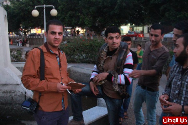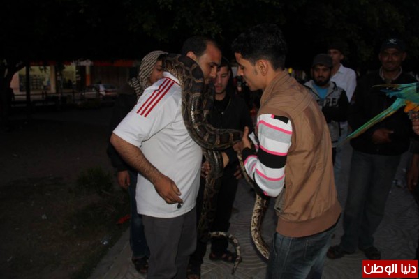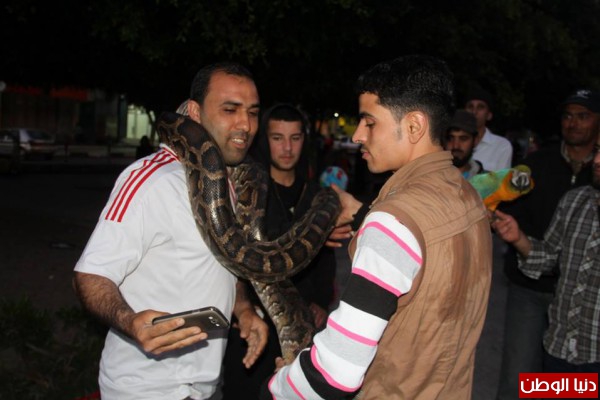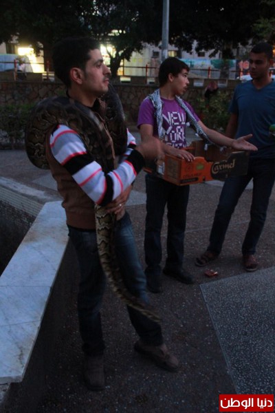 ليس غريباً أن تسير في شارع عمر المختار وسط غزة وتجد عشرات المواطنين يتلاهثون لالتقاط صور تذكارية مع أفعى البيتون يبلغ وزنها 47 كيلو جرام وطولها 5 أمتار تقريباً والذي يتراوح عمرها ما بين 60-65 عام ، فالأمر أصبح شبه استعراضي بالدرجة الأولي فضلاً عن أنها مصدر دخل لأسرة غزيه تسكن جنوب القطاع .