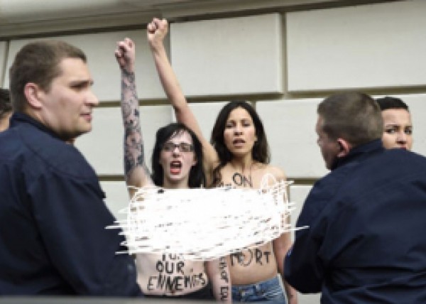 تظاهرت ثلاث نساء عاريات الصدر، اليوم الأربعاء، أمام السفارة المصرية في باريس، تنديداً بأحكام إعدام صدرت بحق نحو 700 مؤيد للرئيس الإسلامي المصري المخلوع، محمد مرسي. وذكرت وسائل إعلام فرنسية اليوم، أن المحتجات الثلاث، وبينهنّ الناشطة السابقة في منظمة (فيمن) الدولية المدافعة عن حقوق المرأة، التونسية أمينة السبوعي، وصلن حافيات الأقدام، وخلعن قمصانهنّ وعبرن الحواجز المقامة أمام السفارة المصرية في باريس.