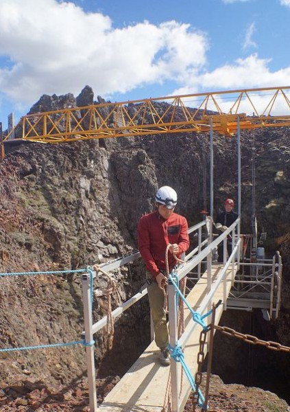 ثم ينزل المتسلقون داخل البركان من خلال رافعة خاصة فبعد إخلال الكثير من التطورات والأدوات والآلات على المنطقة أصبحت أسهل كثيرًا مقارنةً برحلة ستيفانسون ولا يعرف أحد متى تفرغت هذه الأنفاق من الحمم البركانية بالضبط