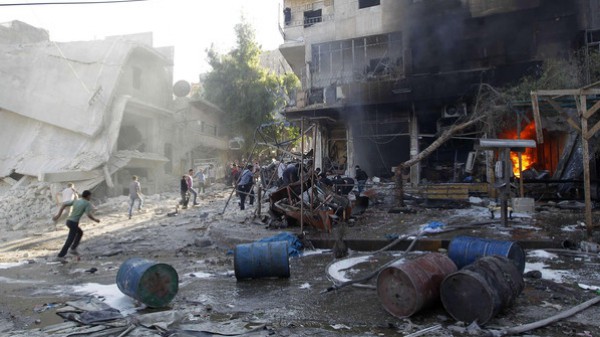 براميل قوات الأسد المتفجرة تدك سوقاً في حلب