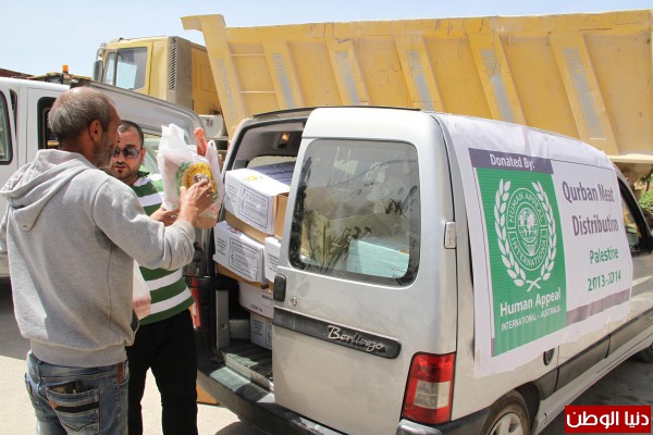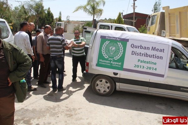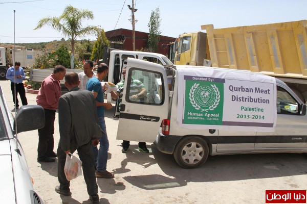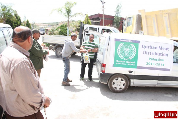 وزعت طواقم مؤسسة نداء الانسان الدولي عشرات الحصص من اللحوم الاضاحي المجمدة على عمال النظافة بمناسبة عيد العمال العالمي بتمويل من هيئة الاعمال الاماراتية ، وذكر بهاء ابو الهيجاء رئيس مجلس مؤسسة نداء الانسان الدولية " ان مؤسسته وزعت مائتي حصة بواقع 2 كليو غرام لكل عمال النظافة ومجلس الخدمات المشترك لادارة النفايات الصلبة في محافظة جنين "