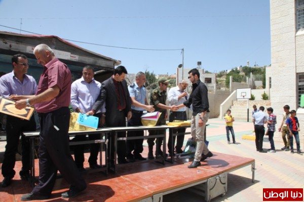 وفي نهاية الاحتفال تم تكريم وتقديم الهدايا للطلبة الأوائل، تأتي هذه المشاركة من قوات الأمن الوطني الفلسطيني دعما للمسيرة التعليمية وتأكيدا على التواصل الدائم والمستمر بين المؤسسة التعليمية والمؤسسة الأمنية .