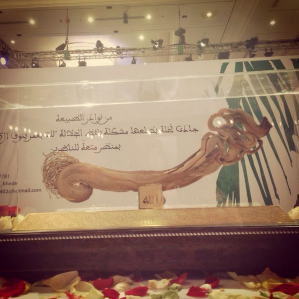 دفع أحد رجال الأعمال من دولة خليجية مبلغ خمسة ملايين ريال، في تحفة طبيعية نادرة جداً من سعف النخل جسَّدت لفظ الجلالة "الله" كانت ضمن التحف واللوحات التي عُرضت في معرض الفن والأزياء المقام في قاعة "نيارة"، بمدينة الرياض، خلال الفترة من 27 إلى 29 من الشهر الماضي.
