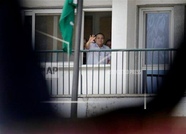 بالصور والفيديو .. على انغام "هابي بيرذدي" : حسني مبارك يظهر لأنصاره من شرفة المستشفى