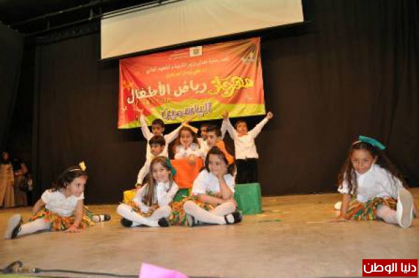 عبر أطفال رياض الأطفال في محافظه أريحا عن تمسكهم بحب الوطن والحياة من خلال فقراتهم الفنية على إيقاع الأغاني والرقصات التي قدموها في المهرجان الختامي السنوي لرياض الأطفال في مسرح المركز الثقافة والفنون .