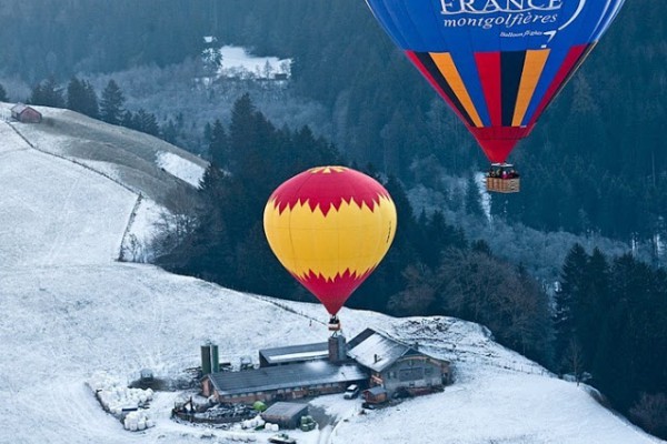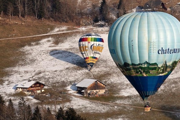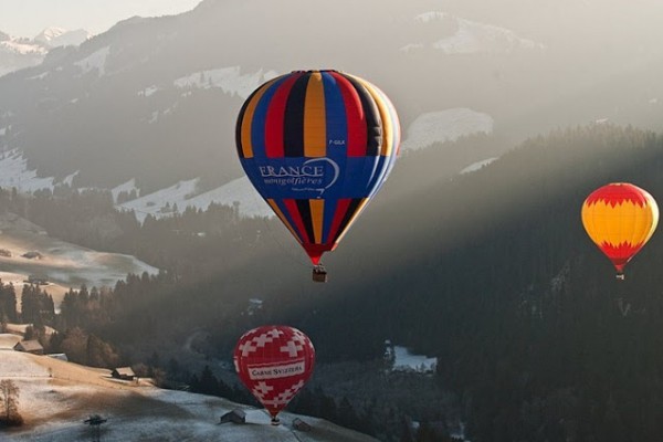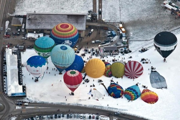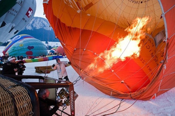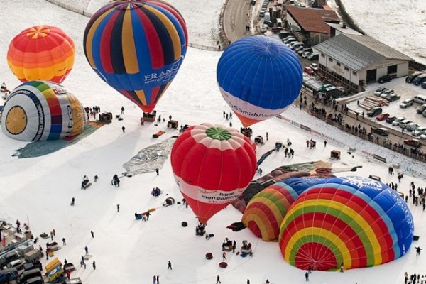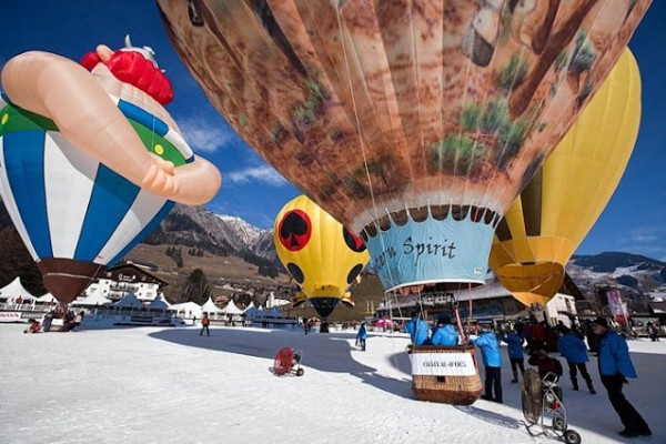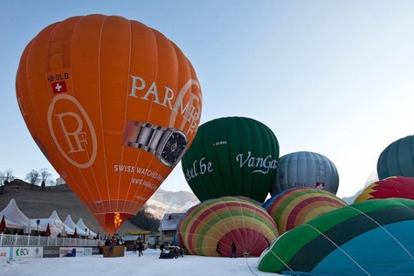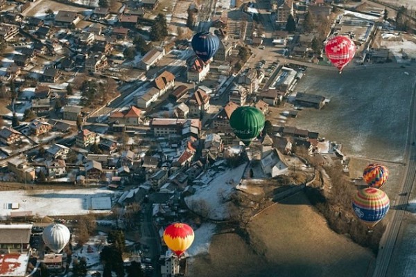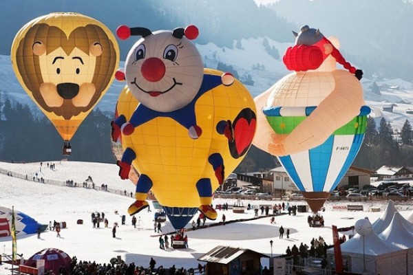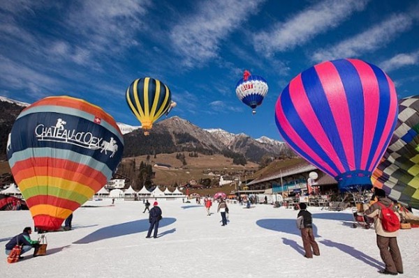 يعد المهرجان الدولي للمناطيد ballooners في قرية جبال الألب الخلابة بسويسرا ، كل عام من شهر يناير