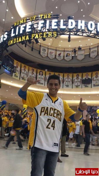 فقد نشر محبوب العرب صورا عبر تويتر والفيس بوك وهو يشارك فريق كرة سلة Indiana Pacers في إنديانا اللعب .