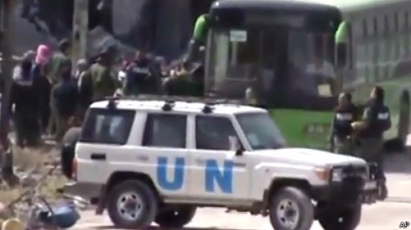 وكانت قافلتان تضمان حافلات تقل المسلحين قد غادرتا حمص الأربعاء ووصلت أولهما إلى بلدتي تلبيسة والدار الكبيرة اللتين تبعدان نحو 20 كيلومترا إلى الشمال من حمص.
