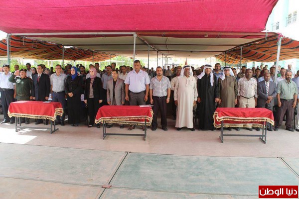 بداية الحفل استهلت بالنشيد الوطني الفلسطيني , وتلاوة ايات عطرة من القران الكريم, ثم كلمة مدير التربية الحواش الذي رحب بالحضور, مثمنا مما تحملوه من عناء السفر ومشقة الطريق, وبيّن اهمية اقامة هذا الحفل على هذه البقعة المحادية للمستوطنات الاسرائيلية في محافظة اريحا