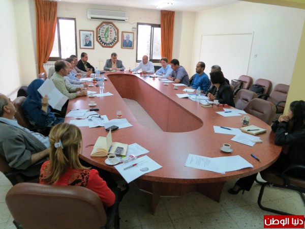 وناقش المجتمعون الخطة القادمة والاليات لتفعيل الهيئات الادارية للنقابات الفرعية من خلال الزيارات الميدانية ومتابعة شروط الصحة والسلامة المهنية في مواقع العمل وكذلك عقد ورش تثقيفية حول "قانون العمل الفلسطيني والصحة والسلامة المهنية" .