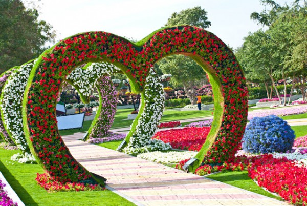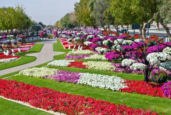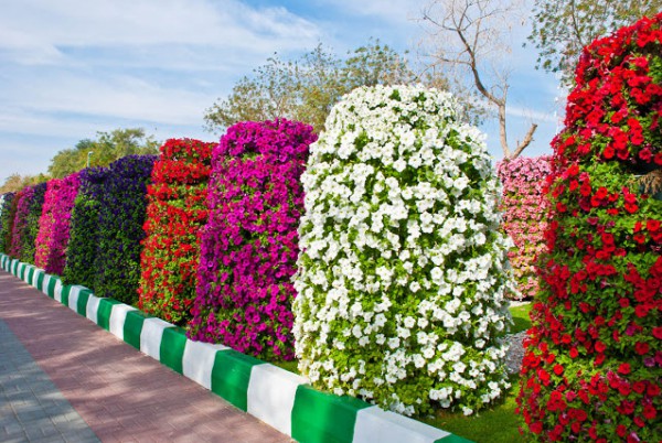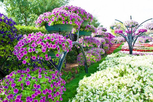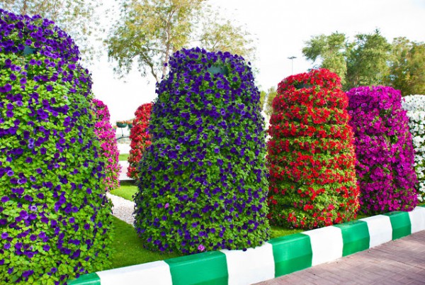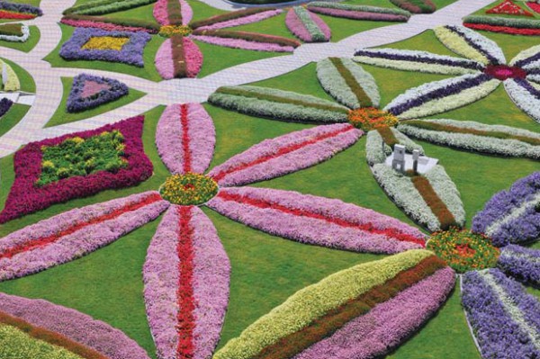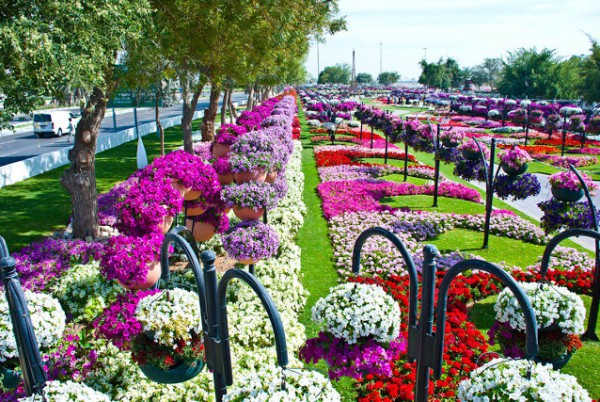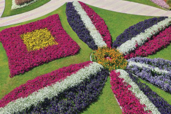 و تم تقسيم وهندسة أرضيات الحديقة وزراعتها بحوالي مليون زهرة مختلفة الأشكال والألوان لتغطية المسطحات الواقعة أسفل سلال الزهور العمودية التي يمكن تغييرها واستبدالها بين الحين والآخر على مدار العام.