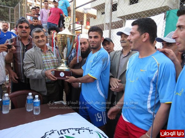 وبعدها سلم مسؤول الجبهة في منطقة الشمال ابو عامر وبمشاركة الحصور كأس الشهيد ابو العباس الى فريق الصمود .