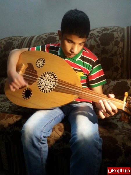 يطمح أن يكون "سيد مكاوي" .. غزة :طفل كفيف "يُدندن" على العود ليصل قلوب المبصرين .. فيديو وصور