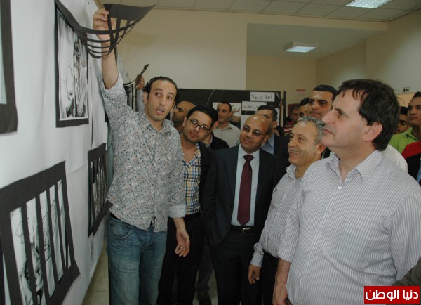وافتتح المعرض نائب رئيس الجامعة للشؤون المجتمعية الدكتور نظام ذياب، ومساعد الرئيس للشؤون الإدارية والمالية الأستاذ فالح أبو عرة، بحضور الفنان سباعنة،ومجموعة من أستاذة قسم اللغة العربية والاعلام،وحشد كبير من الطلبة.