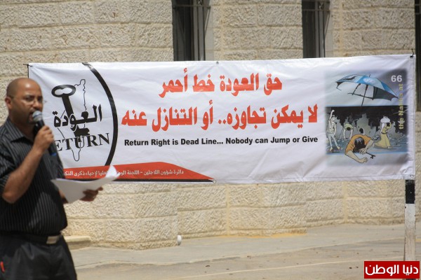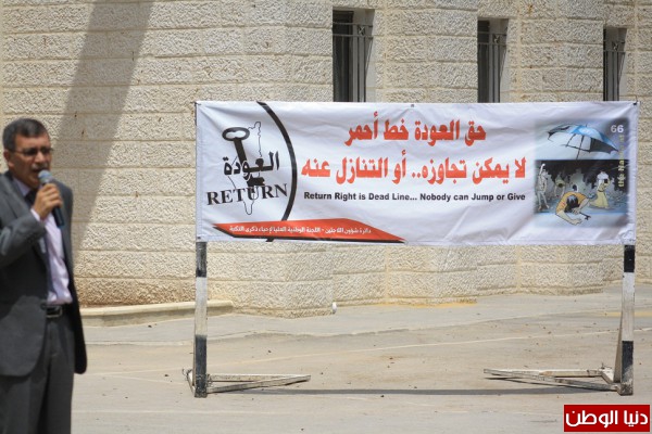 كافة فعاليات المحافظة للخروج بفعاليات تتناسب مع الظروف الصعبة التي تتعرض لها قضيتنا الفلسطينية من تهويد وتهجير على أيدي الحكومات الاسرائيلية المتتالية ، كما اكد ان قضية فلسطين باقية مادام الشعب صامدا على أرضه، ومحافظا على مقدساته، ولن يقبل بحلول سياسية فاقدة للشرعية والمضمون الوطني الفلسطيني، فحق العودة مقدس نابع من قدسية هذه الارض التي باركها الله من سابع سماء، والتي لها جذور عميقة وراسخة