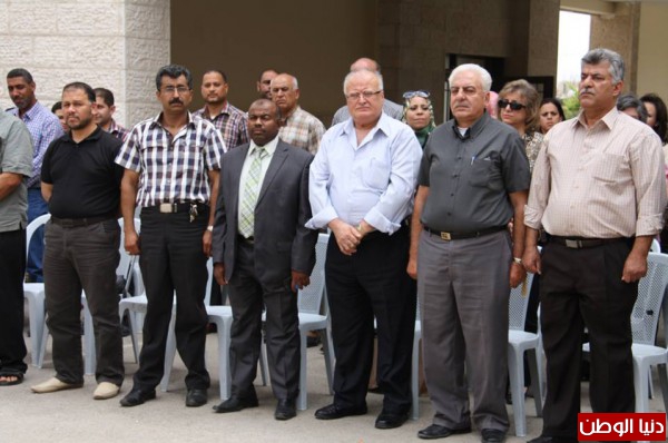بحضور نائب محافظ محافظة أريحا والأغوار السيد جمال رجوب والأب ماريو حدشيتي مدير مدرسة التراسنطة ومدير جامعة القدس المفتوحة فرع اريحا الدكتور راتب ابو رحمة وقائد قوات الامن الوطني عميد الركن خالد ابو كامل وعضو المجلس التشريعي على رومانين ومدير التربية والتعليم محمد الحواش ومنسق اللجنة الوطنية العليا لإحياء ذكرى النكبة صلاح