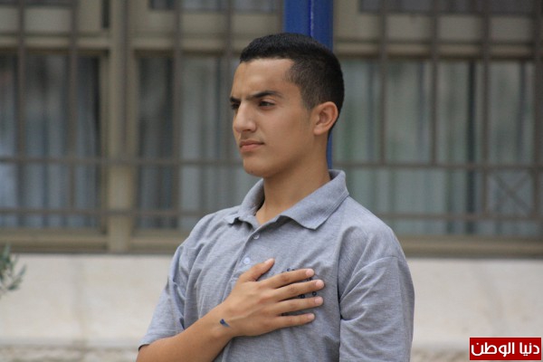 الفني العلمي بالتعاون مدرسة التراسنطة و مع اتحاد الشباب الديمقراطي في قاعة المدرسة بعد السلام الوطني الفلسطيني