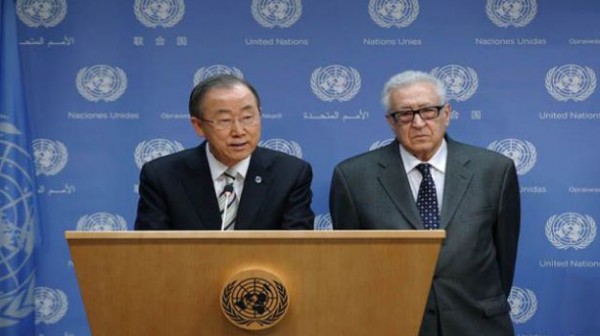 وأفاد بان أنه عقب مشاورات مع الأمين العام لجامعة الدول العربية نبيل العربي "قررت بأسف كبير قبول" استقالة الابرهيمي بدءاً من 31 أيار الجاري.