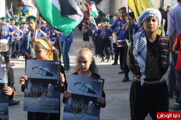 مجموعة كشافة ومرشدات يافا مسيرة العودة بالذكرى السادسة والستون للنكبة في مخيم بلاطة.