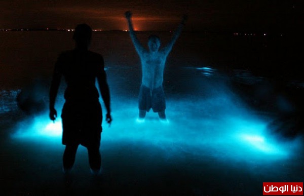 الصورة في الأعلى هي لأحد اصدقاء المصور يظهر بطريقة طريفة وكائنه شبح وسط الاجواء المضيئة . أو بمعني اصح وسط المياة المليئة بالطالب المضيئة .
