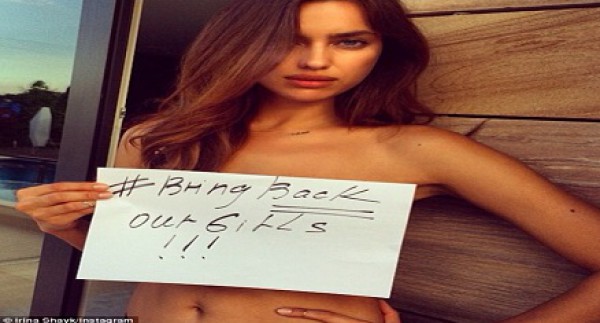 وأظهرت الصور صديقة لاعب الكرة وهي تقف شبه عارية وتحمل لافتة مكتوب عليها، أعيدوا فتياتنا المخطوفات.